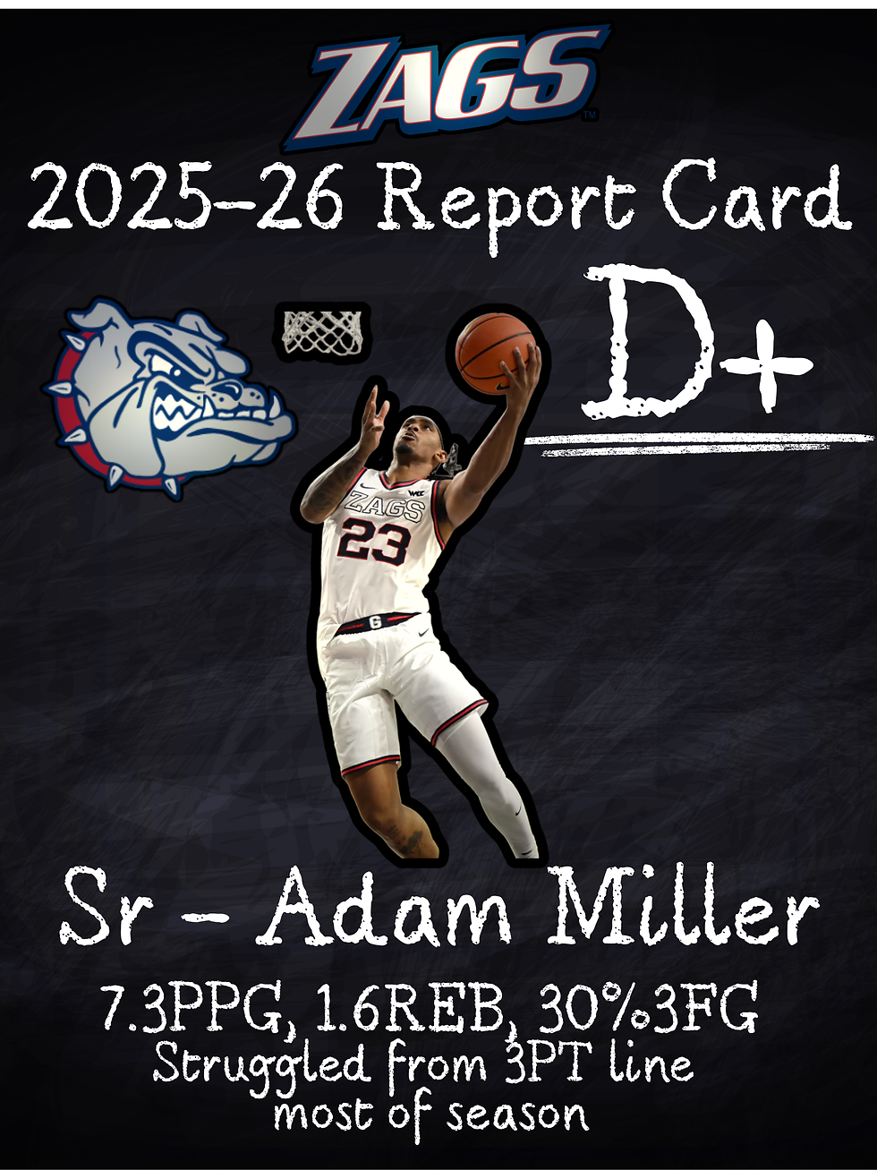 The transfer from Arizona State, who came off an insane shooting season of 43% from 3, just never found that rhythm with the Zags. Only shooting 30% from 3FG on the season, Miller just didn't live up to the expectations he had coming in as a sharpshooter who could help spread the floor for the potential All-American bigs. While he did still provide sparks where he could, overall, the consistency just wasn't there.